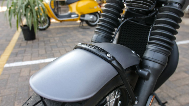 My test bike was a matt silver colour with a chocolate brown seat. Sounds odd, I know, but it actually gives the bike an air of “old school cool”. The now familiar faux carbs hide fuel injectors and in typical Triumph fashion, the attention to detail is top class. The bike looks right, in a sensible brogue shoe kind of way. Not funky like its Bobber sibling, but just where function meets form in a classic way.