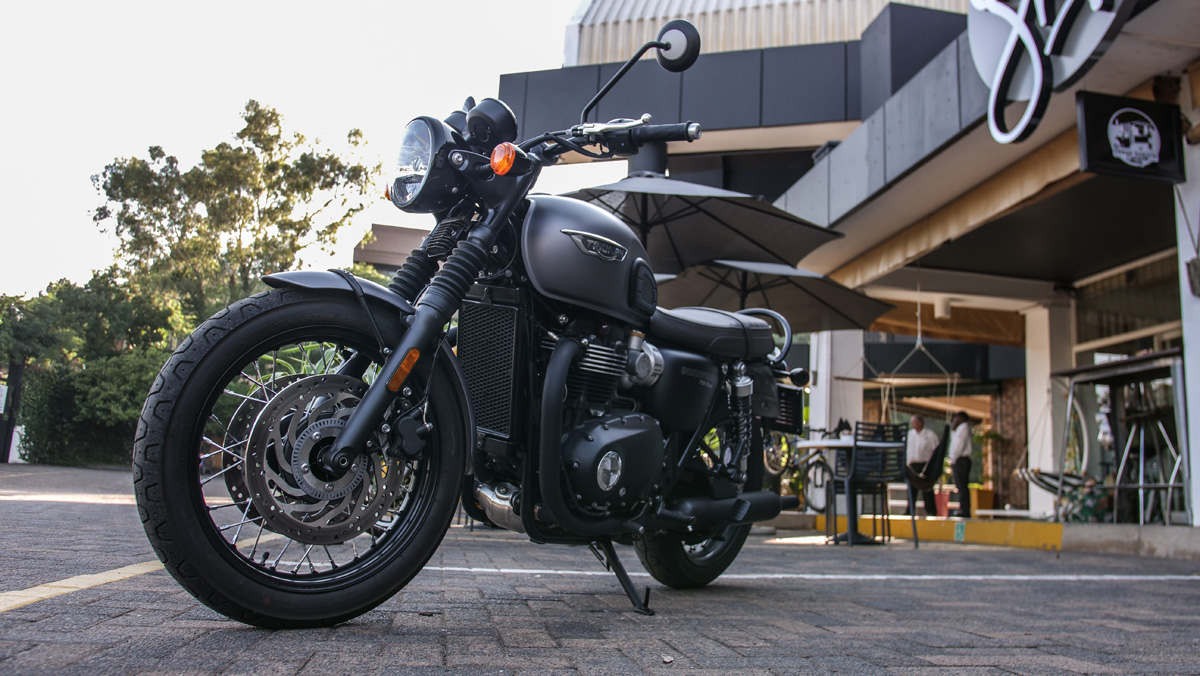 Today we think we need bikes for dedicated tasks. Adventure, sport, commuter, etcetera, etcetera. Flip! How complex has life become? Anyone buying a T120 Bonnie can revel in its simplicity and user friendliness. Brakes are twin 310mm discs up front chomped on by 2 piston Nissin callipers, with a single 255mm disc at the back. Stopping power is progressive, with good feel.
