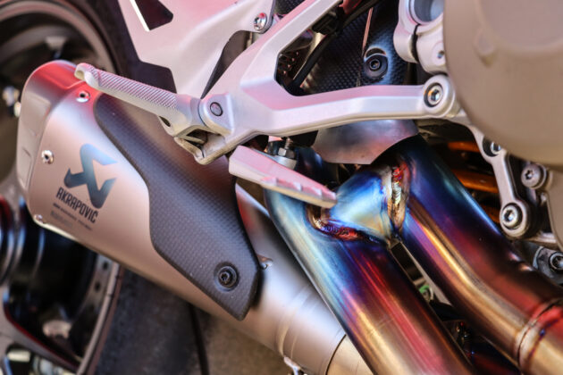 The Streetfighter had a full system Akrapovič and the Monster, a black twin-pipe Termignoni slip-on. Listening to the Italian symphony was intoxicating, to say the least. I enjoyed the old school cool of the Desert Sled. The balance of the bike is spot on, with the 900cc air-cooled V–Twin perfectly powered for the bike’s application.
