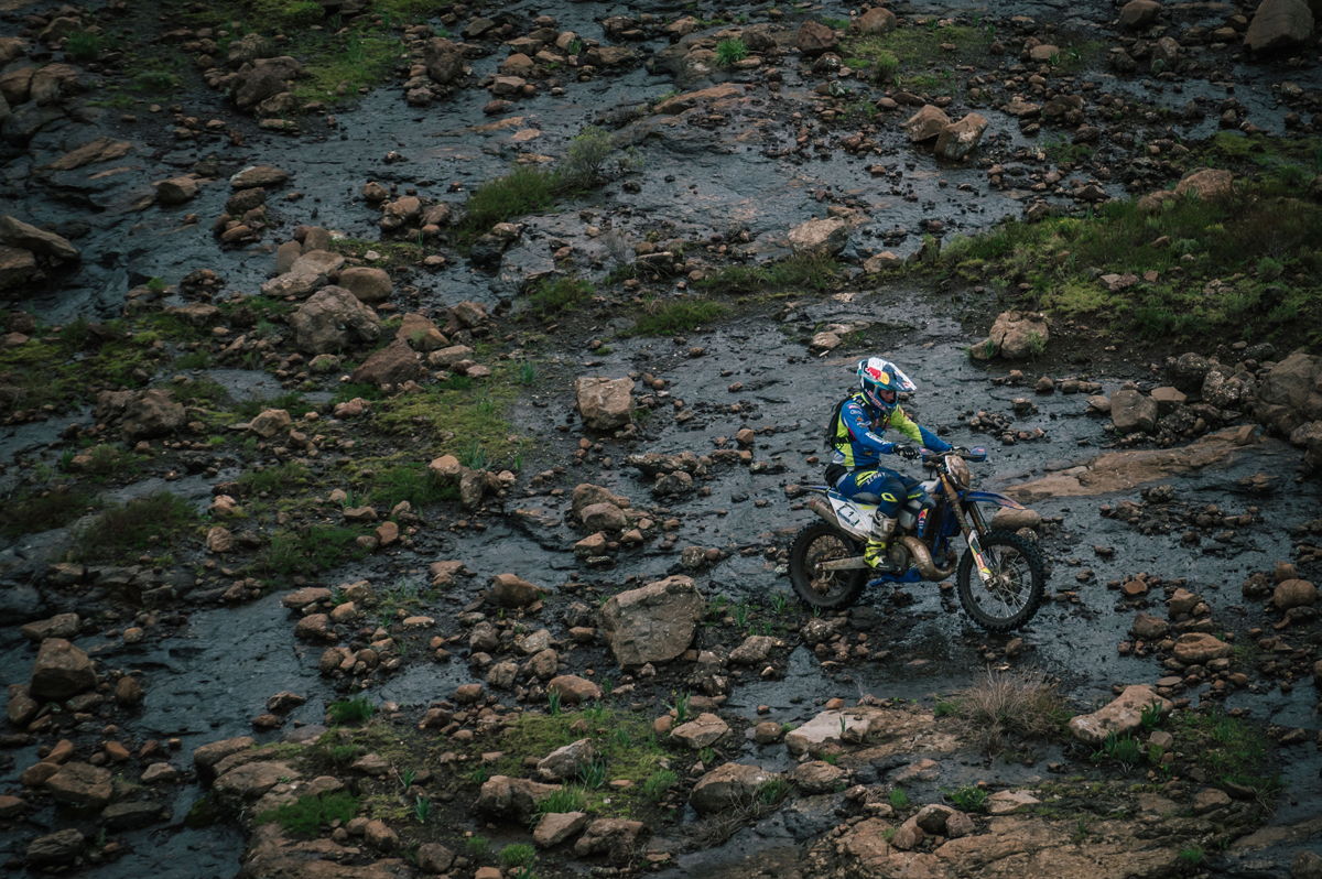 Wade Young, Sherco Racing Factory Team powered by Motul, making his way through wet conditions to the finish line on Day 2, by ZCMC