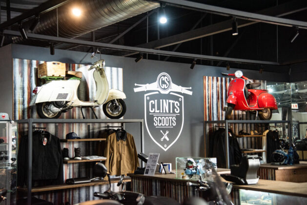 Then there is the extensive range of apparel, helmets and boots, much of it at very special sale prices, the barber shop and, of course, Clints Scoots sharing floor space and with its own special appeal to lovers of all things Italian scooter.