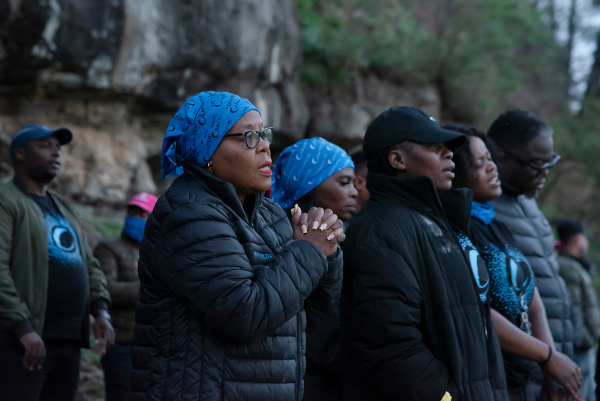 It was a rise and shine kind of day as we woke up early, enjoyed a cup of coffee and a rusk before setting out on a morning walk in honour of loved ones lost to cancer and people who are still fighting. The trail led to a beautiful cave down by the river called the Mosgat. It was a mixture of grassy fields and a small rocky descent to a path that continued to wind through a forest area before it opened up to the most amazing view of the moss and fern-covered cave. Reflecting on the walk, I found a strong similarity to life in general. I realised that most people have a beautiful, easy life, much like the grassy fields, but sometimes they encounter hardships and life takes a decline, similar to the rocky descent. We then find ourselves winding through the dark unknown, but somewhere down the line, we will reach the break in the overhanging canopy and experience the beauty of pushing through and winning the fight. With the right mindset and support, we can get through the tough times that arise, and we can look back knowing that we made it.
