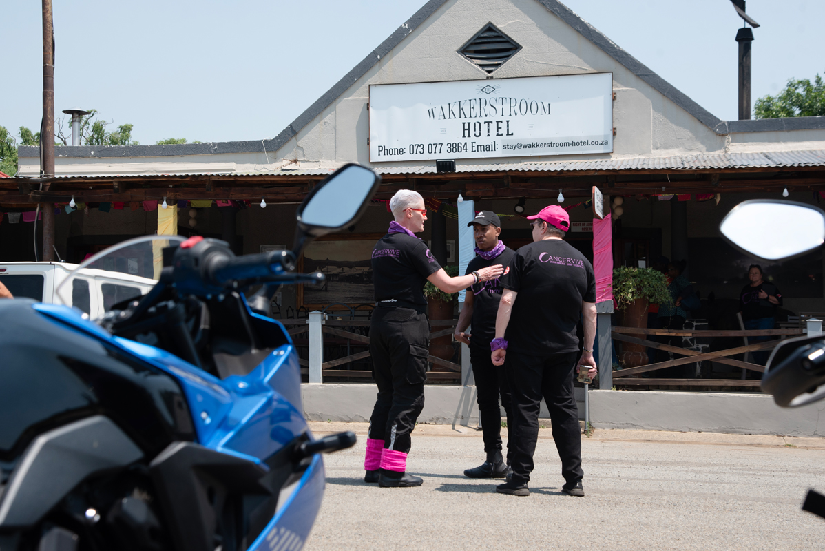 We started the 8-day journey at the exquisite Tafin Royal Hotel in Centurion, Pretoria. Warm embraces were shared with friends who could be considered family, and excitement brewed for the journey ahead. After our briefing and prepping of riding gear, we attended an educational session led by CHOC – Childhood Cancer Foundation. We were introduced to what childhood cancer is, how early warning signs present themselves differently from those in adults and the importance of awareness regarding childhood cancer since only half of children with cancer are diagnosed. This information was vital for the individuals of Cancervive, not only because it increased their own knowledge regarding the topic, but also because they could now use it to educate the communities they visit in the future.