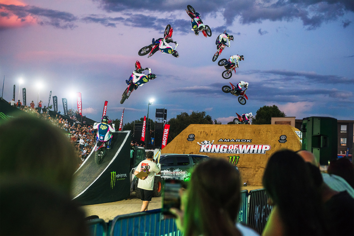 Intense battles in both the Best Whip and Best Trick contests at the 2025 Volkswagen Amarok King of the Whip saw the USA’s Wyatt Fontenot crowned the new King of the Whip, while Australia’s Pat Bowden successfully defended both of his Best Trick titles. The action unfolded in front of a sold-out crowd at Montecasino, Johannesburg. The event was presented by LW Mag in association with Monster Energy, Yamaha, Garmin, Motul, GoPro, Fox Racing, PlayTSOGO and Estrella Cerveza.