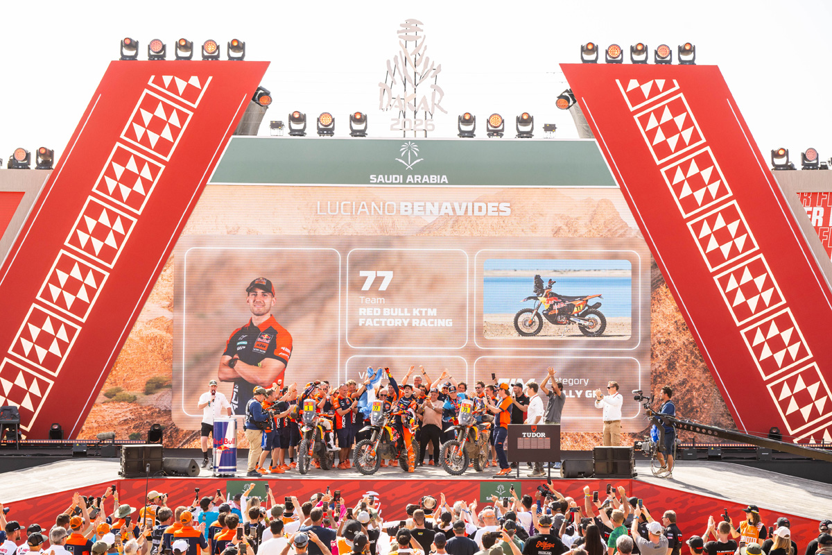 Red Bull KTM Factory Racing’s Luciano Benavides has conquered the 2026 Dakar Rally in the most dramatic fashion imaginable, sealing overall victory by just two seconds after a never-give-up fight across Saudi Arabia. Refusing to surrender despite setbacks, pressure, and one of the closest battles in Dakar history, the Argentine delivered when it mattered most, attacking right to the final kilometre on his KTM 450 RALLY to claim his first Dakar Rally victory. Daniel Sanders and Edgar Canet both reached the finish of the world’s toughest rally-raid in fifth and 32nd positions respectively, completing an extraordinary Dakar campaign defined by resilience, belief, and relentless determination from the Red Bull KTM team.