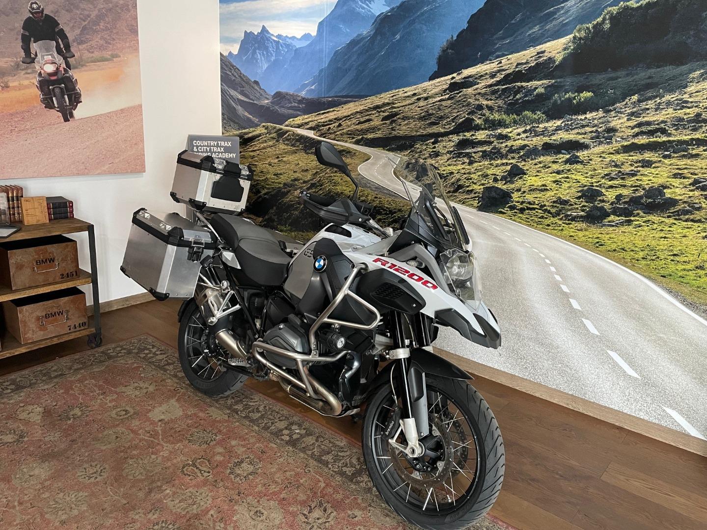 2016 BMW R1200GSA in white, the benchmark adventure bike for riders who want comfort, range and real off road ability in one package. The proven 1200 cc boxer engine delivers strong, reliable power for highway cruising and gravel touring, while the tall stance and long travel suspension provide confidence on rough roads. Rider ergonomics are relaxed and upright, ideal for long days in the saddle.
