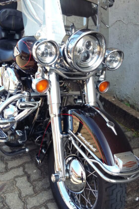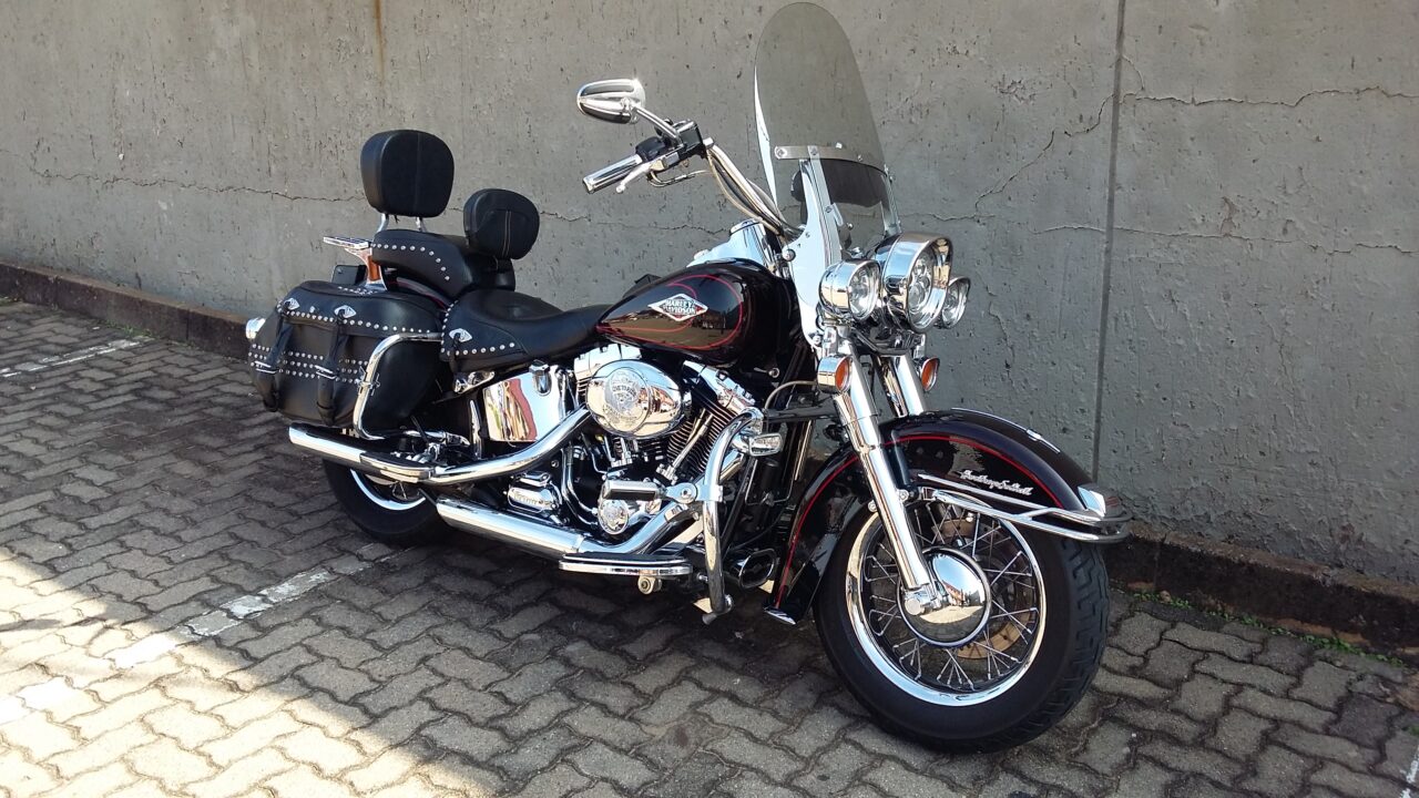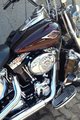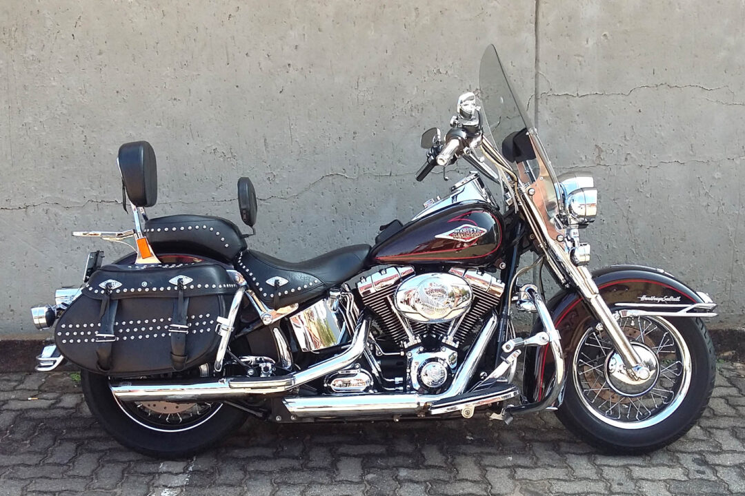 Softail Heritage 2011 Model with 67647km on the Clock and 1584cc Engine! Stunning Heritage, Smothered in Extras: LED Headlight & Passing Lamps with Hooded Visors, Spotlights, Chrome Forks, HD Chrome Axle Covers, Front & Rear Fender Rail, Chrome Master Cylinder, Complete Nut & Bolt Cover Set, Braded Hoses & Cables, Screen & Tank Pouch, Integrated Speedo / Ref Counter, Vance & Hines Staggered Exhaust, Rear Crashbar, Helmet Locks, Riders Back Rest, Live To Ride Theme: Air Cleaner, Timing & Derby Cover, Digital Oil Temp Gauge, Chrome LED Tail Light with Integrated LED Light Bar, Stealth Rider Theme: Rider & Pillion Floor Boards, Brake Pedal, Clutch Pedal & Heel Shifter, Grips, Highway Pegs and Mirrors. Luggage Rack and Reinforced Panniers.